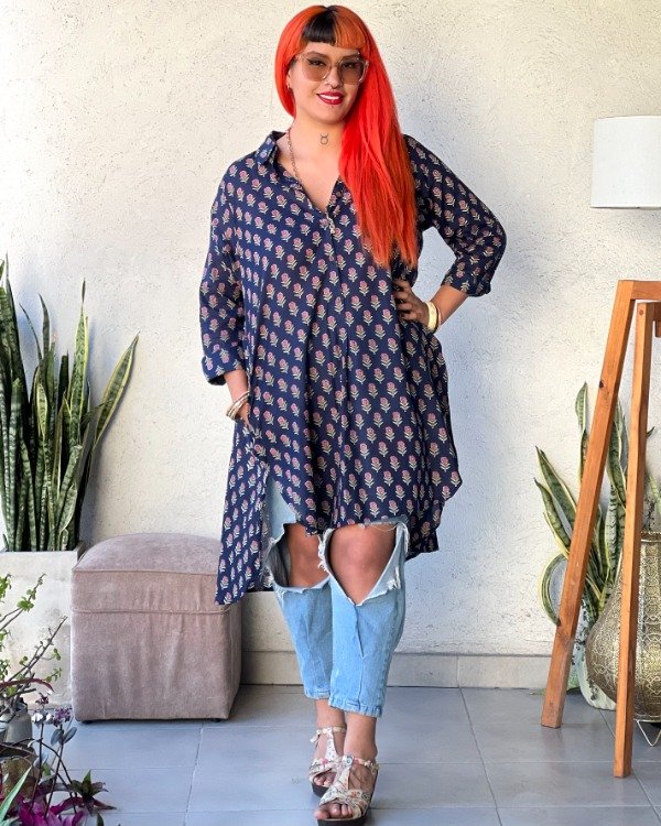 • Camisola larga de Algodón Indio con estampas Block Print