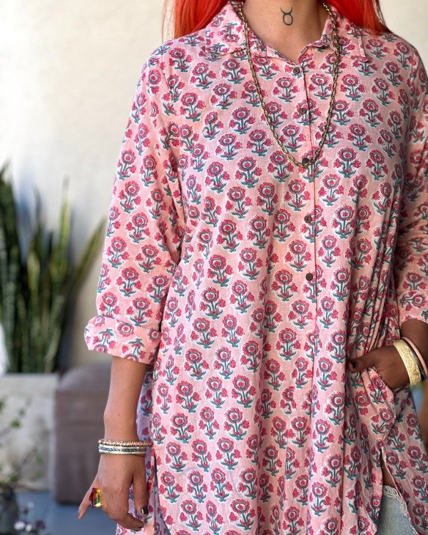 • Con botones hasta la mitad. Cuello clásico camisa. Con bolsillos .