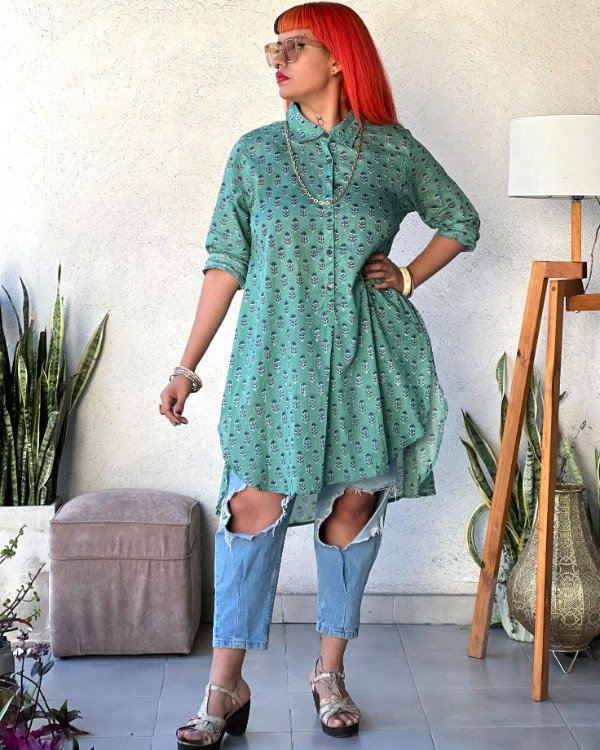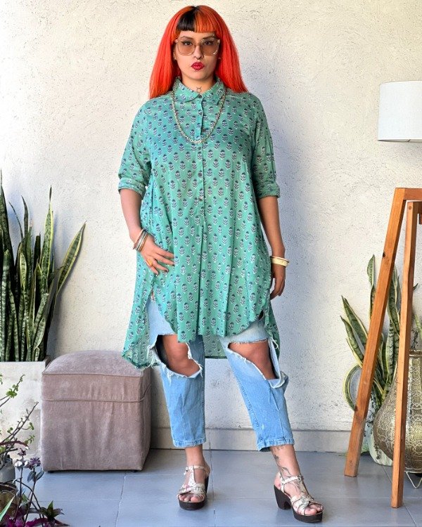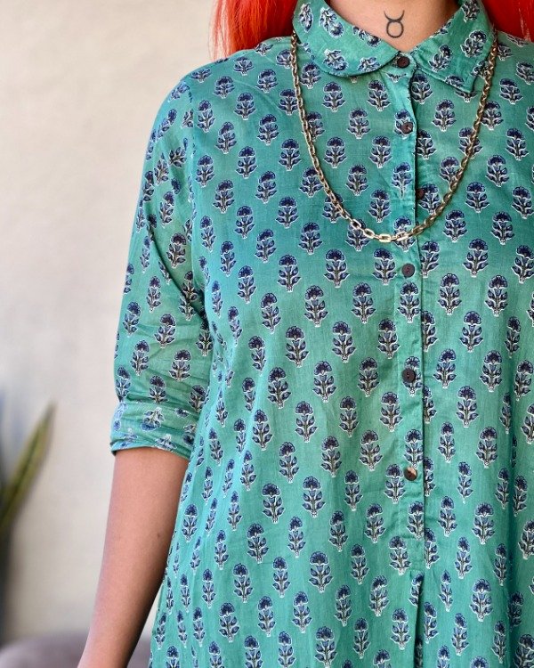 - Con botones hasta la mitad. Cuello clásico camisa. Con bolsillos .