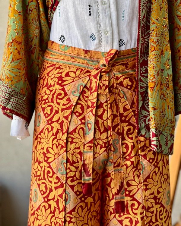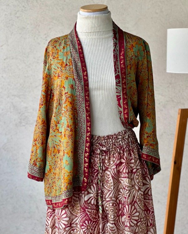 Kimono Corto Línea Gold Musgo y Bordo M a XL