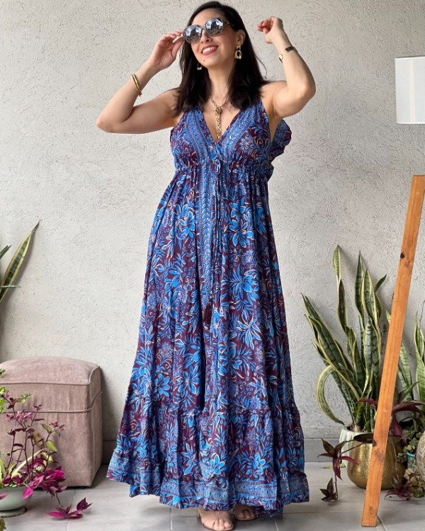 • Solero de Seda India Premium Línea Gold con detalles dorados en su estampa
