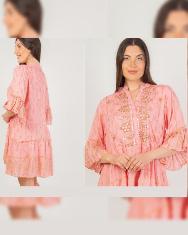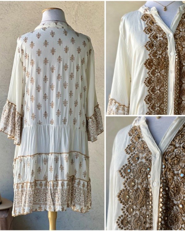- Vestido estilo Folk 100% algodón indio, línea Gold, con detalles bordados