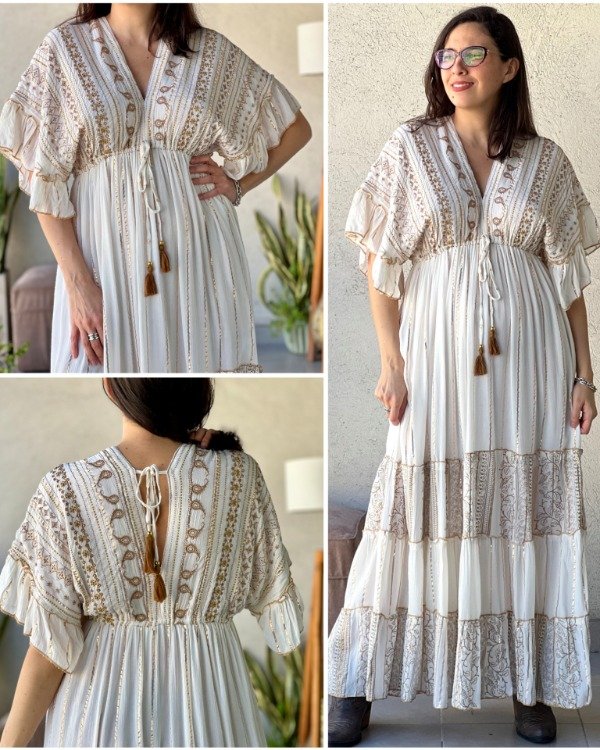 - Vestido de algodón Indio con detalles bordados y lurex línea Gold Premium