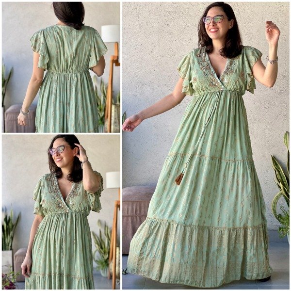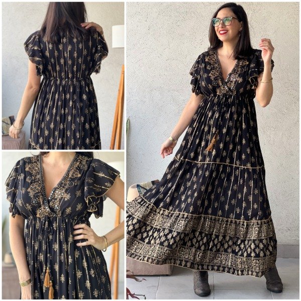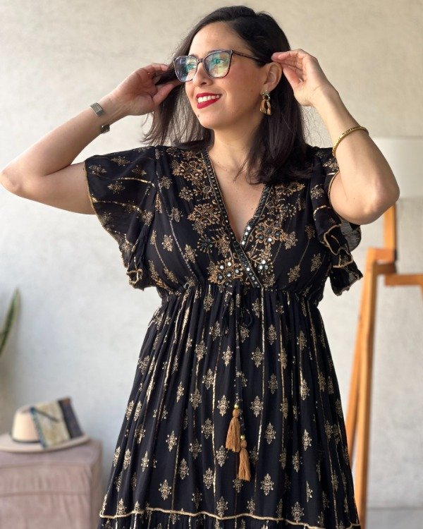 - Vestido de algodón Indio con detalles bordados y lurex línea Gold Premium