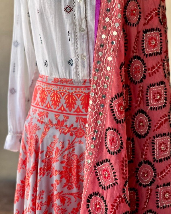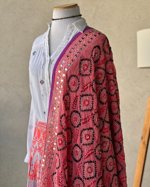 Dupatta Salmón y Púrpura