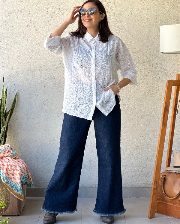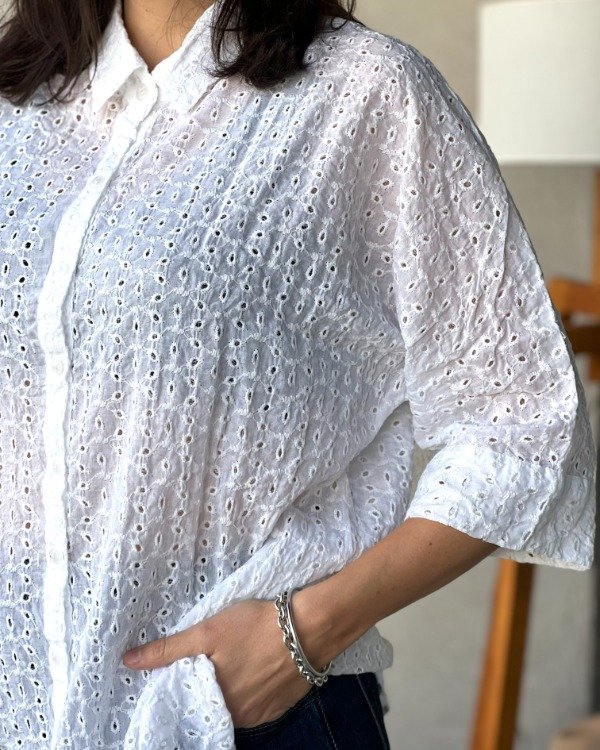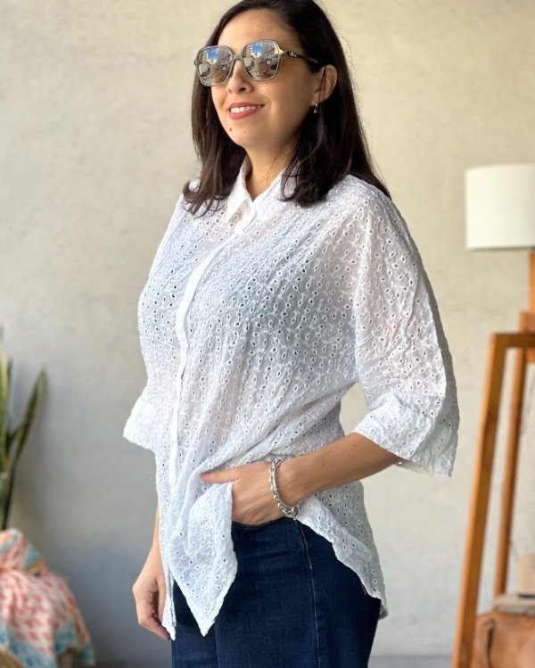 - Camisa de Algodón Indio premium con detalles calados estilo broderie