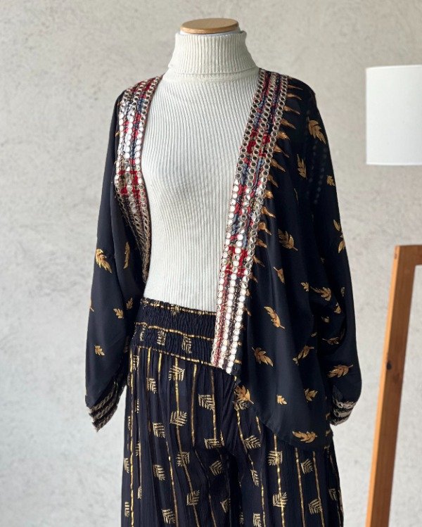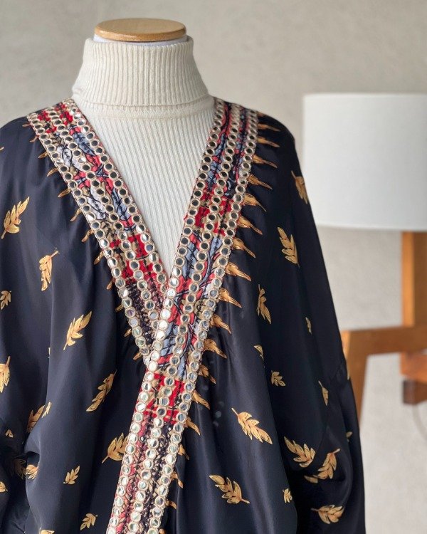 • Kimono Corto de Seda India Linea Gold con detalles de pasamanería artesanal