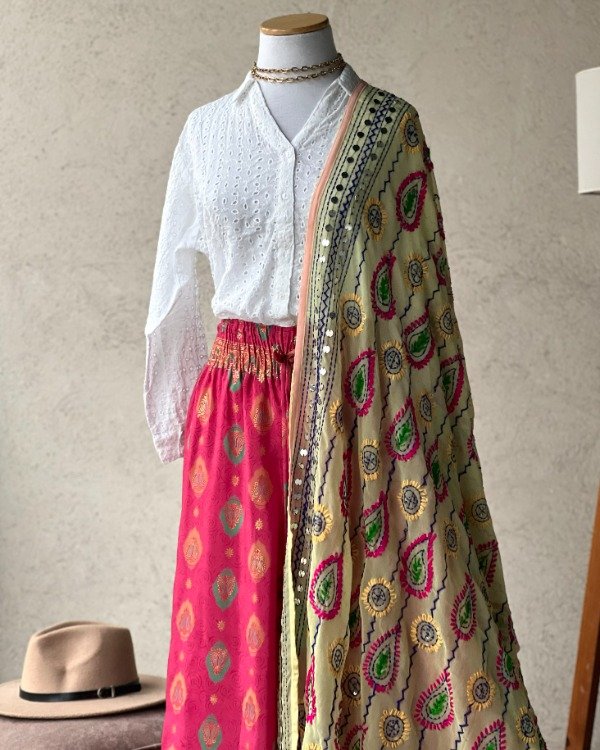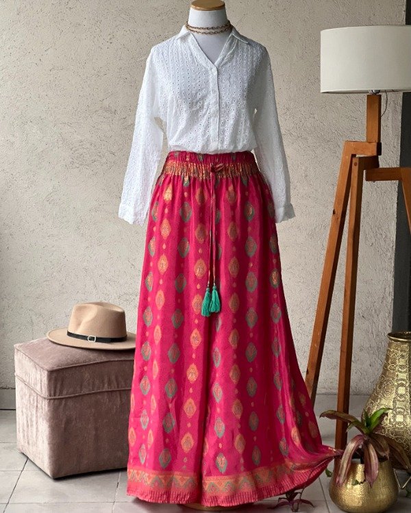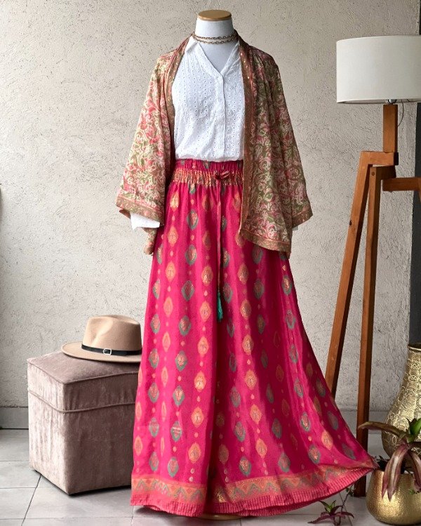 - De Seda India Premium Línea Gold con detalles dorados en su estampa