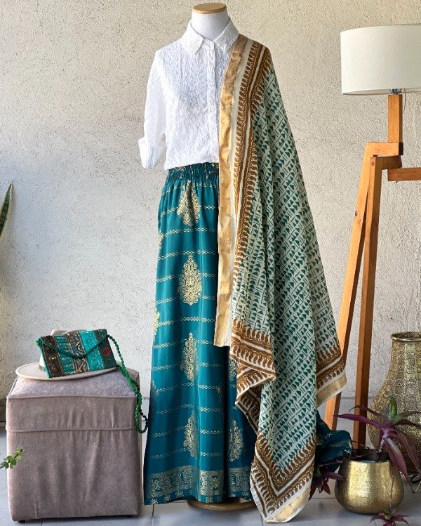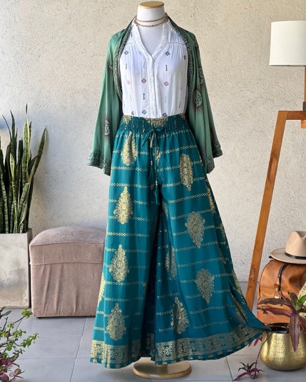 • De Seda India Premium Línea Gold con detalles dorados en su estampa