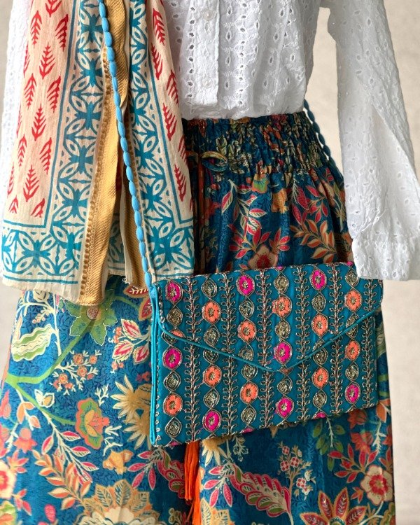 - De Seda India Premium Línea Gold con detalles dorados en su estampa