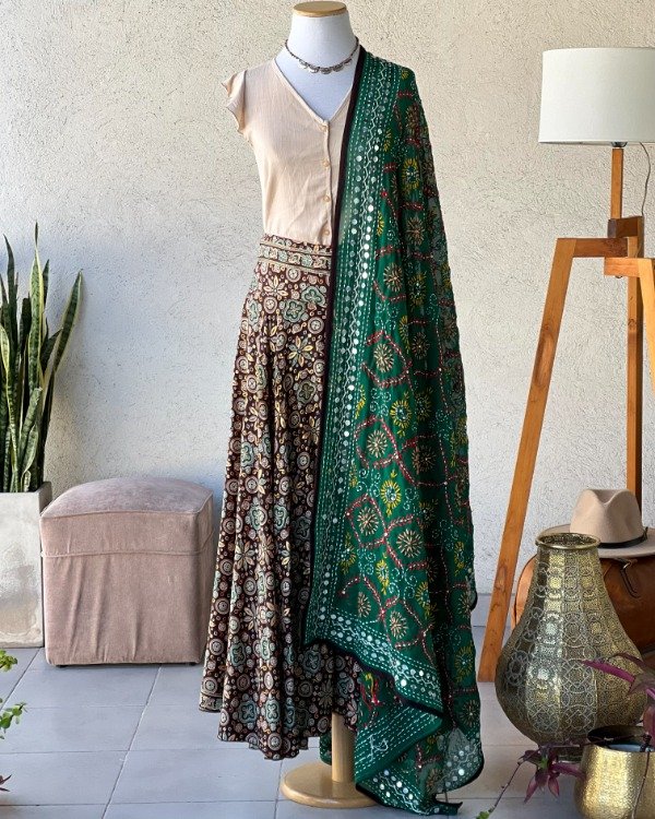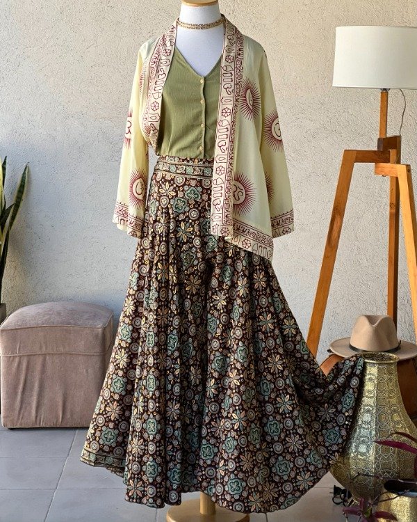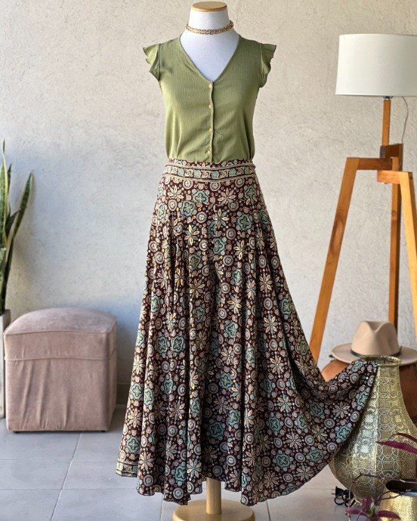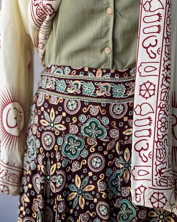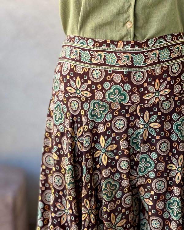 Pollera Pantalón Pushkar Chocolate y Verde M a XL