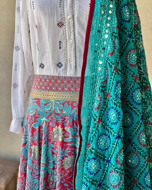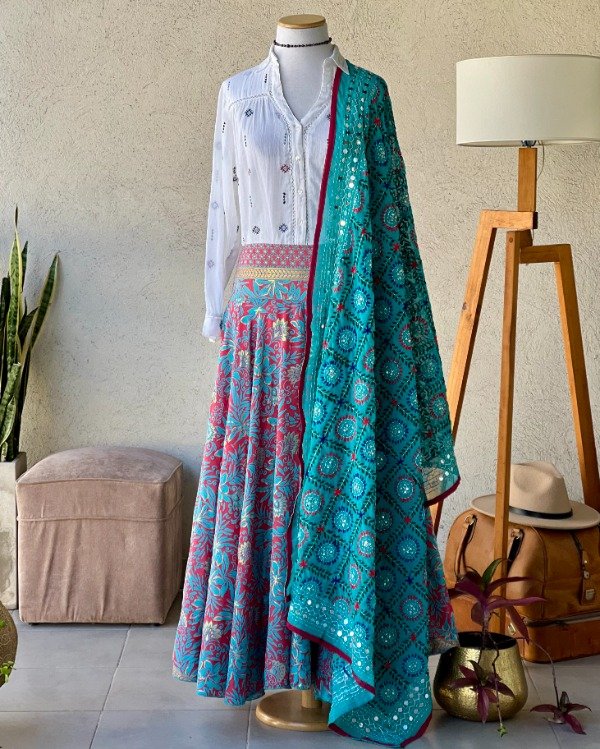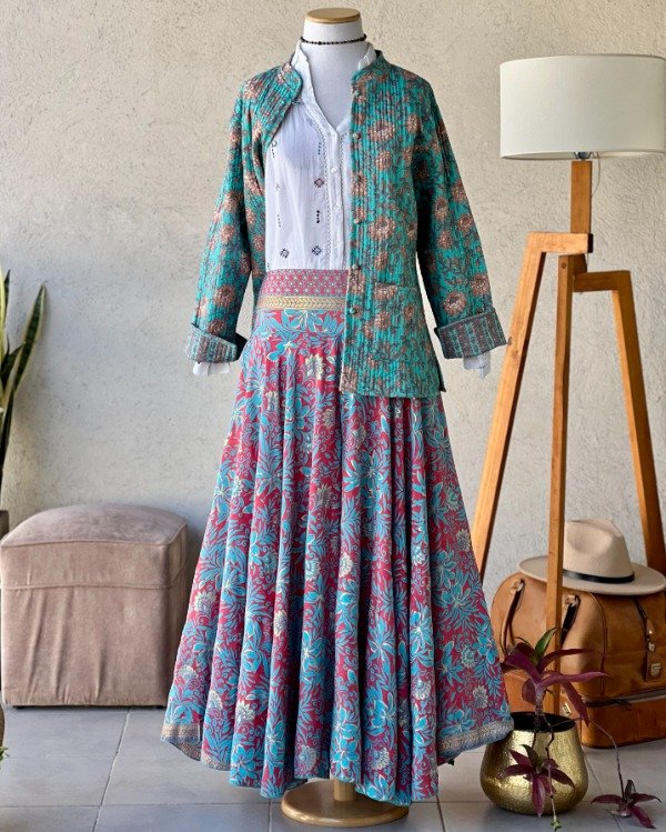 - De Seda India Premium Línea Gold con detalles dorados en su estampa