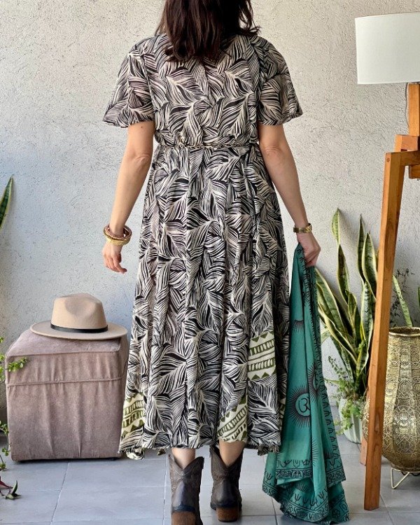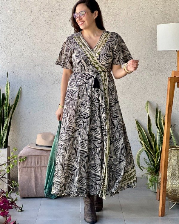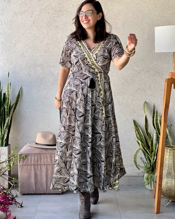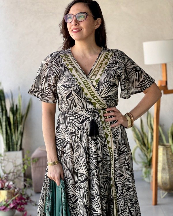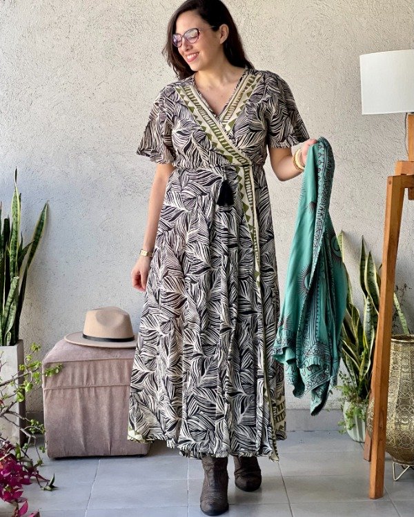 Vestido Wrap de Algodón Negro y Musgo S a XL