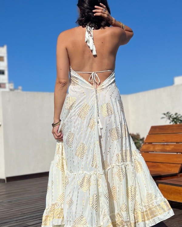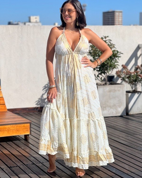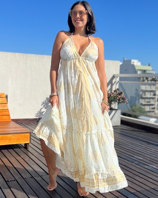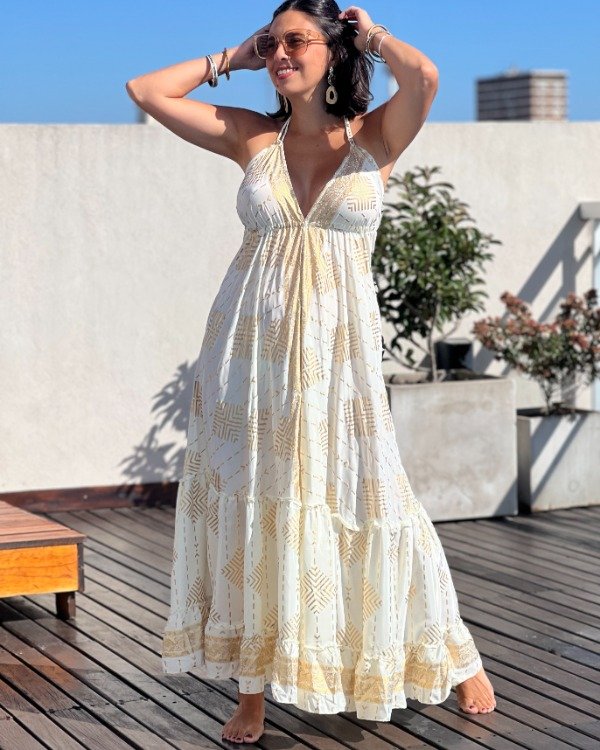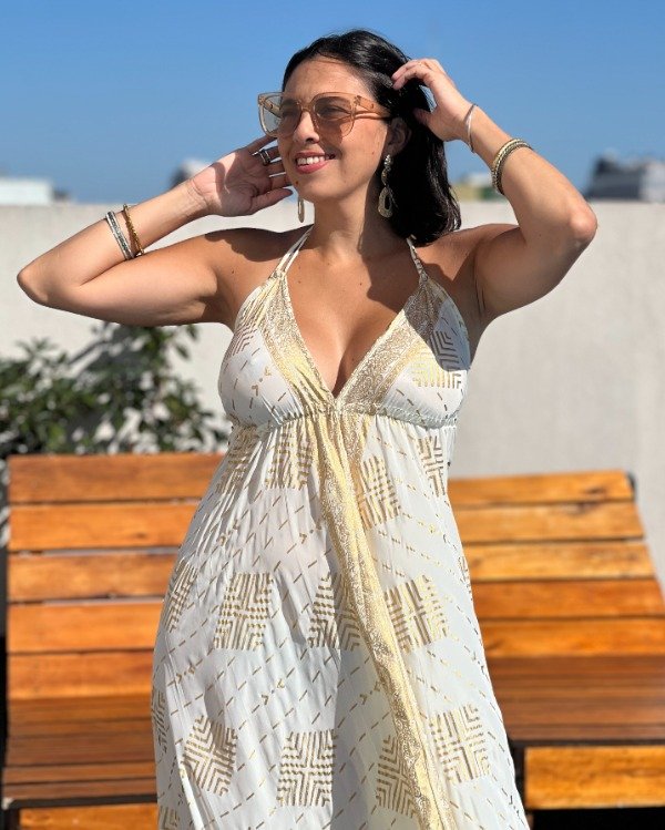 • Solero de Seda India Linea Gold con detalles dorados en su estampa.