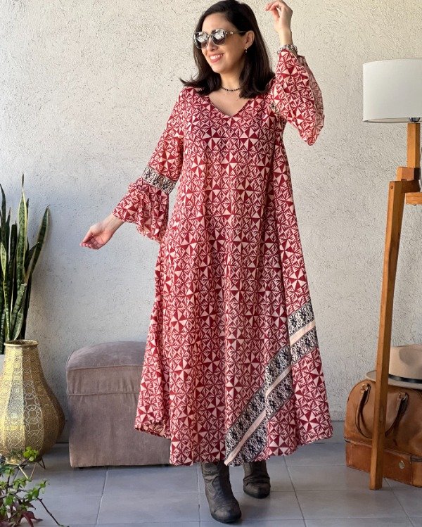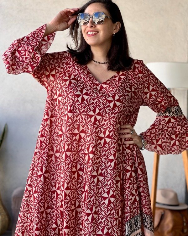 • Túnica de Algodón con estampas inspiradas en la técnica Block Print