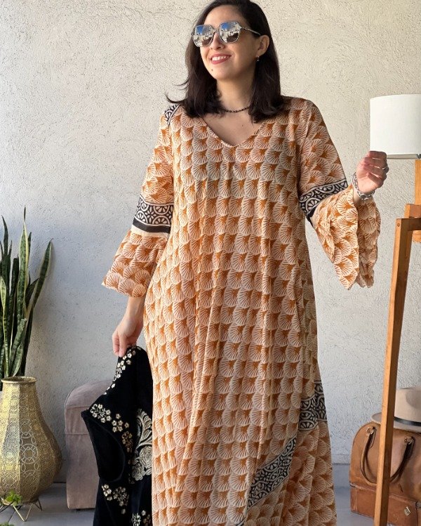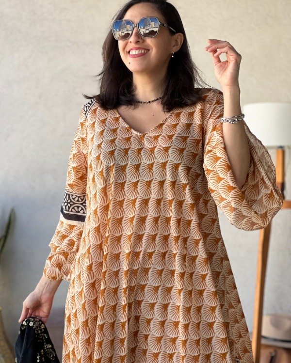 • Túnica de Algodón con estampas inspiradas en la técnica Block Print
