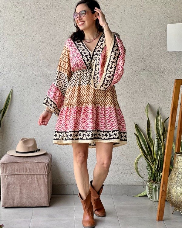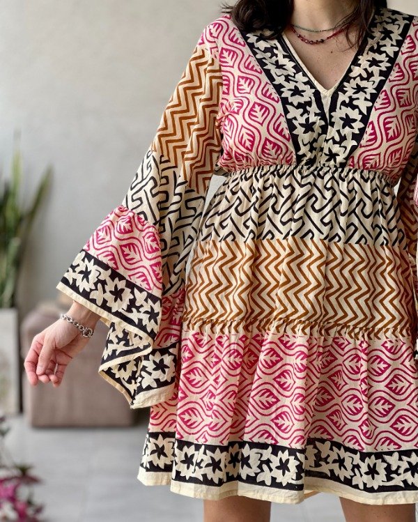 • Vestido estilo Folk 100% algodón indio