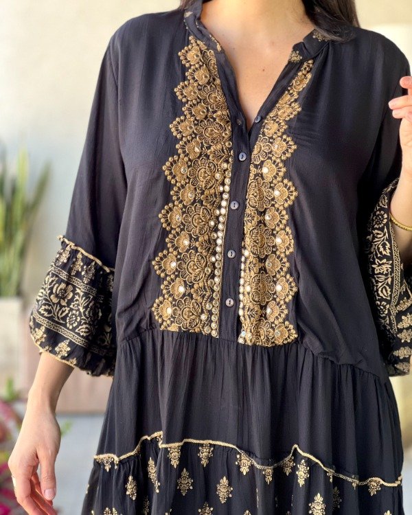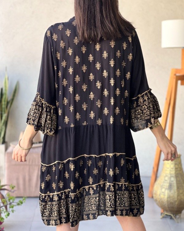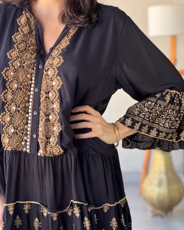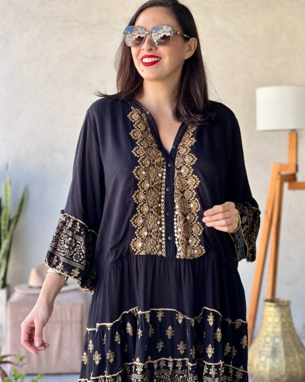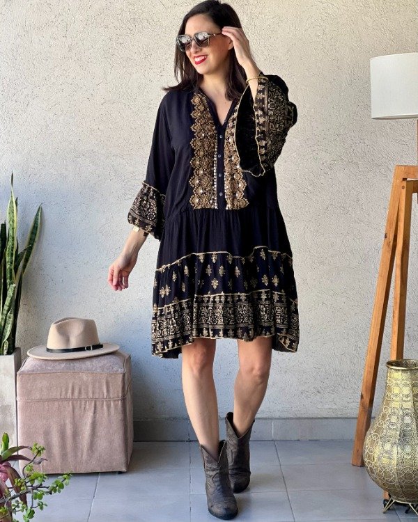 - Vestido estilo Folk 100% algodón indio, línea Gold, con detalles bordados