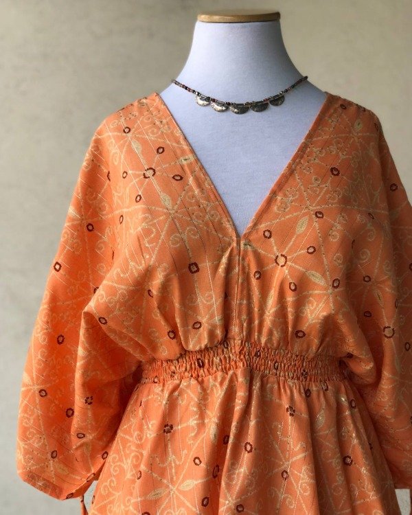 - Vestido de algodón indio con Print y detalles súper delicados de Lúrex.