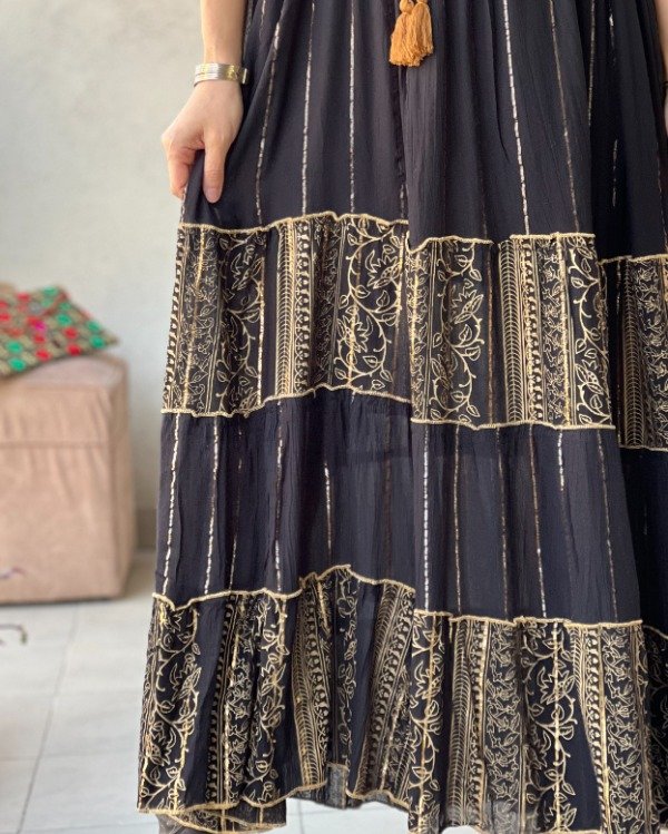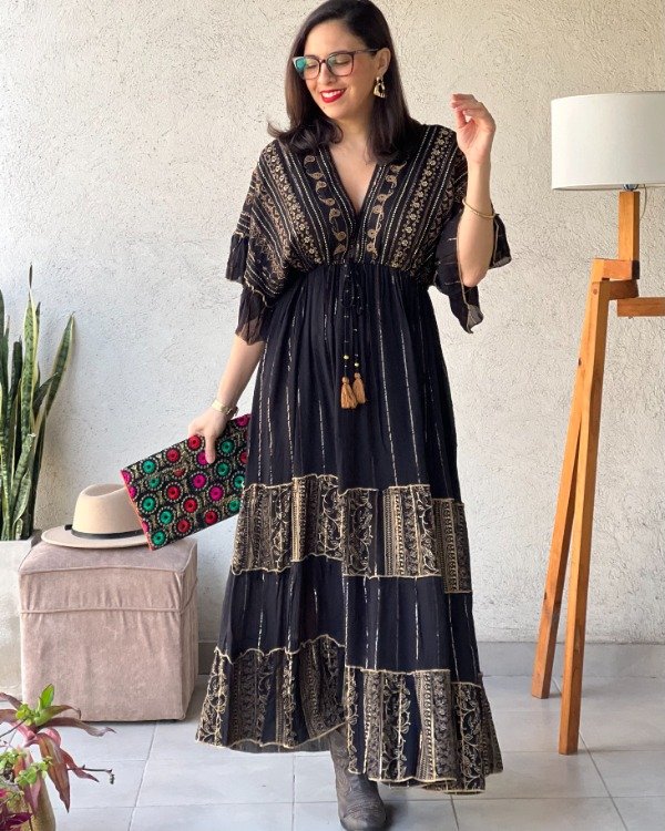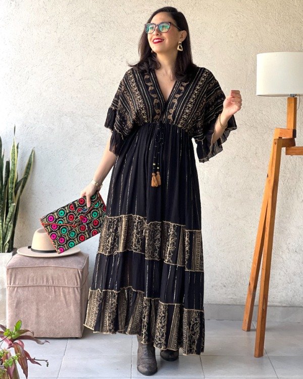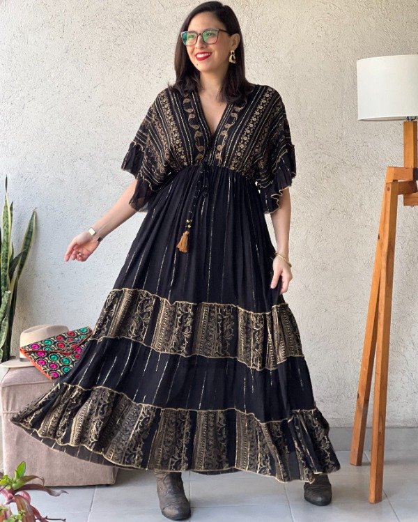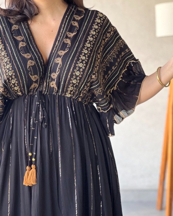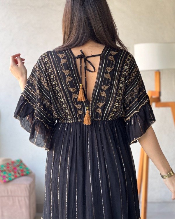 - Vestido de algodón Indio con detalles bordados y lurex línea Gold Premium
