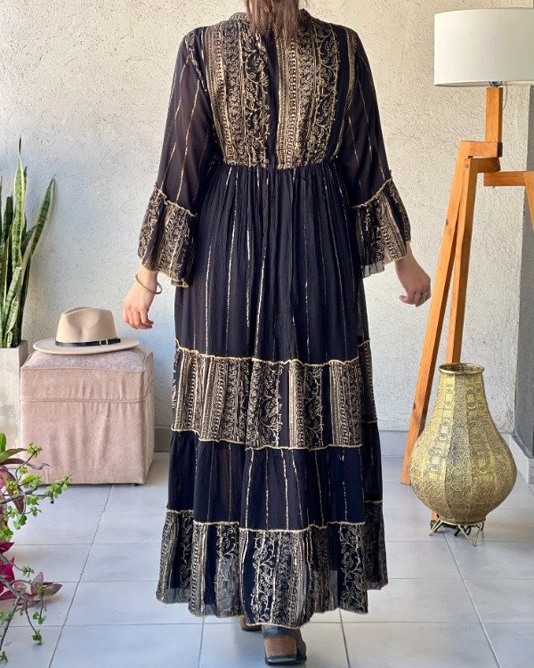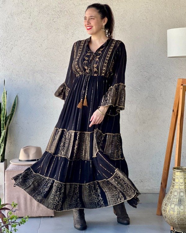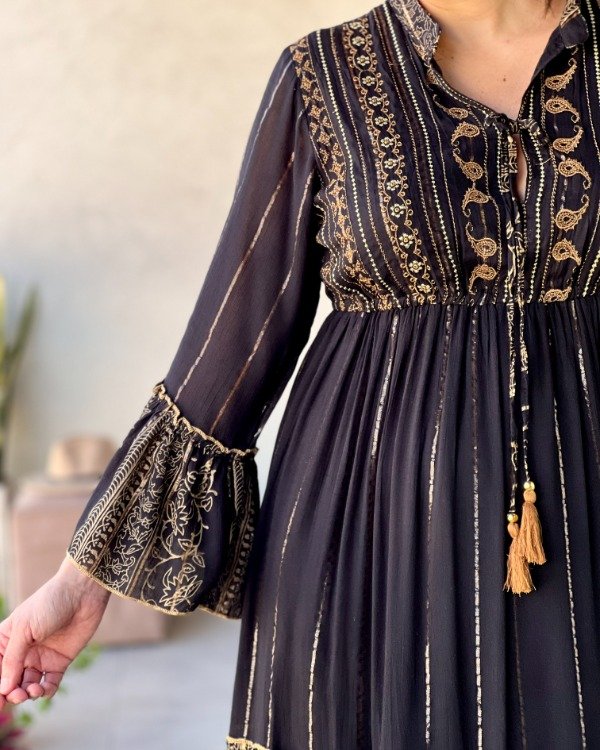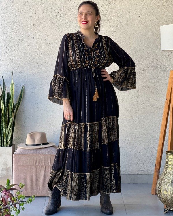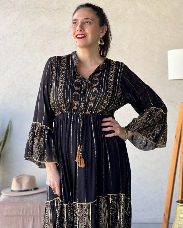 - Vestido de algodón Indio con detalles bordados y lurex línea Gold Premium