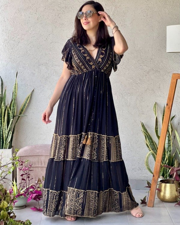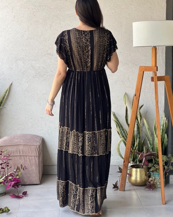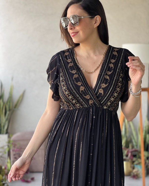 - Vestido de algodón Indio con detalles bordados y de Lúrex Línea Gold