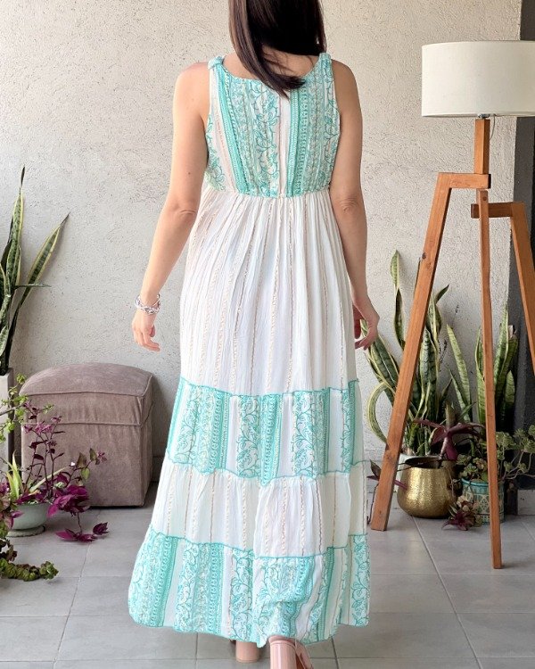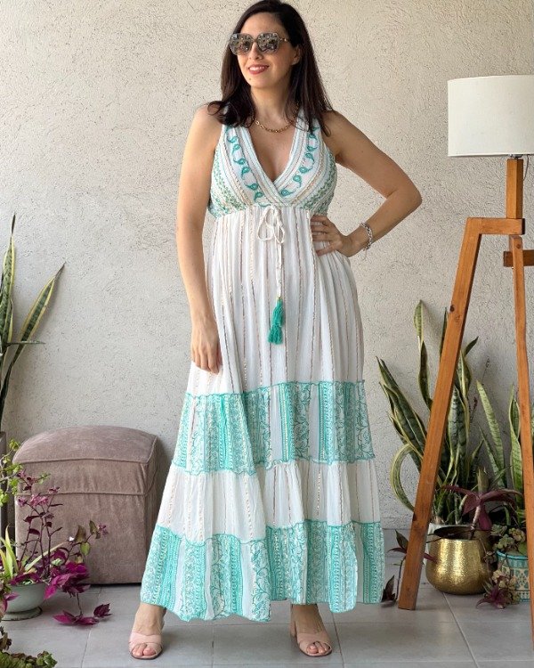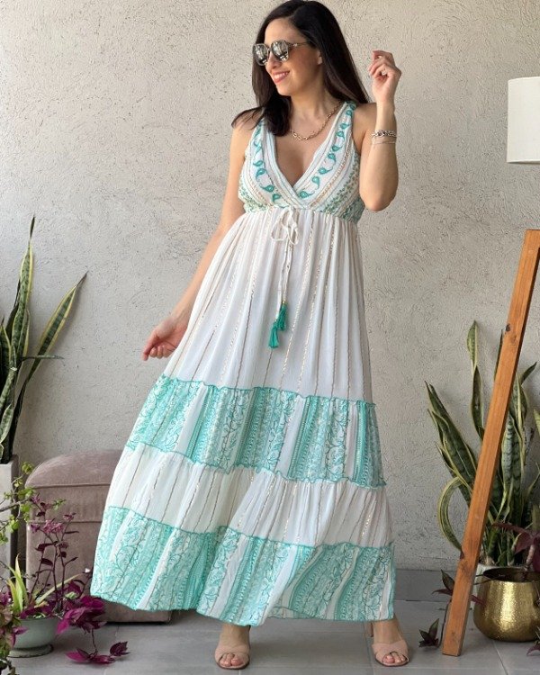 - Solero de Algodón y Viscosa, con detalles dorados y de Lurex en su estampa