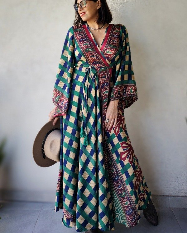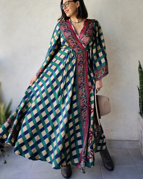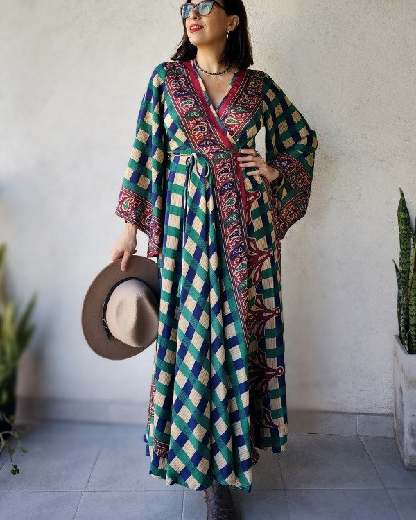 - Se envuelve mediante dos lazos a tu cuerpo, adaptándose a su forma y marcando la silueta de manera sutil. Su caída y vuelo son únicos.