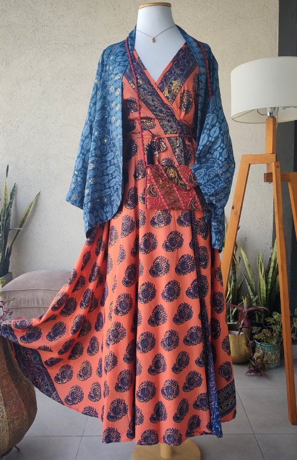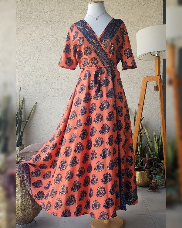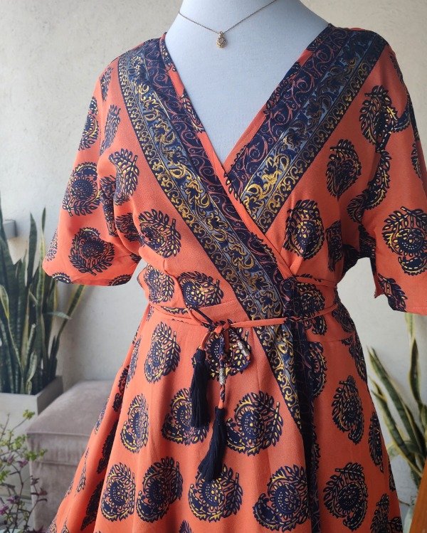 • Vestido Wrap! De Seda India Premium Línea Gold con detalles dorados en su estampa